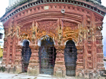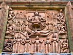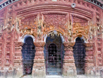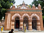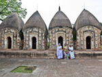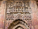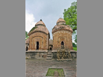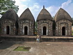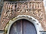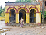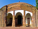 illambazarenglish : "Ilambazar:-Ilambazar, located north of the river Ajay, was an important trading center in the nineteenth century. Sugarcane and indigo were cultivated here. Silk and coal was also with business items. The people there were very rich for all this business. Sahebghat was then a port on the river Ajay. Ilambazar is now a busy town, with large business houses and old traditional buildings. The terracotta work of the temple here is one of the most beautiful in Birbhum, which can be seen in the two hundred year old tin shaded Gouranga Mahaprobhu temple. It is made in the octagona style of Rekh Deul architecture. There are beautiful terracotta works in the temple including the battle of Rama and Ravan, the family of Durga, life story of Krishna's childhood, other stories of social life and many more. The temple is maintained by the West Bengal State Archaeological Survey. In fact, the lower part of the temple has become very bad due to the nearby market. Adjacent to the temple is a porch. We asked the senior people gossiping there about the tin shade but they could not answer. From here, if you go to Brahmanpara, you will find three temples. The first is the temple of Bhairabnath Shiva built in 1846 by Bhairab Chattopadhyay. Although the temple is old, there is no terracotta work here. And if you go a little further, you will find the dilapidated labdlord’s houses and Durga Dalan of Banerjee’s. Opposite it is the Pancharatna Lakshmi Janardhan Temple, a seventy-foot terracotta work of 1846 built by Khudiram Bandyopadhyay. The two-storied temple has three arched gates and a balcony. The idol of the temple is Narayan's Shalgram Shila which is another form of Vishnu. Inside the entrance is beautiful terracotta work. There are references to many myths. Most of these are above the head of the gate. Next will be the 19th century Rameshwar Shiva Temple built by Ramanath Chatterjee. There is a beautiful panel of Mahish Mardini here. There are many more beautiful mythology panels including a Ram-Sita. There are many more ruined temples here but they are being ruined due to lack of care. It is in Ilambazar, the birthplace of the famous painter Mukul Chandra Dey, who photographed these temples in 1940, which was not easy at the time. "+