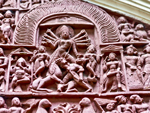 uchkaranenglish : "Uchkaran:-Uchkaran is only four and a half km from Nannur. Although the road is four and a half km, we had to go about eighteen and a half km as the road condition was very bad. There is a group of four temples in Uchkarana. The temples were built in 1768 by Harendra Nath Sarkel. However, when going to the front of the temple, the villagers have to be asked a little for the direction. Because the location of the temple is little inside from the main road. The temples are maintained by the West Bengal State Archaeological Survey. The people of the village are very co-operative, so no one has to be in trouble. There is another temple of the same period here, which is called the temple of Dharma Thakur but we could not go because of the heavy rain. The wheels of our car were going in the mud and the road was very muddy. The four temples stand on the same platform. Each temple has beautiful terracotta works where the stories of Ramayana, Kali, Durga, Krishna etc. are narrated with terracotta works. However, the temple is not in an open space like Itanda, but is surrounded and arranged with some flowering plants and electric lights. It is nice to see the temple being renovated. Heavy rain disrupted photography. "+