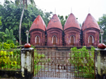 surulenglish : "Surul:-Surul was the business center of the British East India Company in the eighteenth century. Sugar is particularly significant in production. Due to the trade being by river, there was a busy port called Sahebghat near Ilambazar. Here a man named Srinivas Sarkar made ship glides, sold it to the British and the French, and made lot of money. As money increased, he built a huge palace. At present Surul is a very little known village, even from here, there is no such good transport to Bolpur. Surul Rajbari is locally known as Surul Barobari. Durgapuja here is about two hundred and fifty years old which still carries its tradition. Despite the loss of Puja’s splendor due to economic problems, the palace is illuminated for the days of Durga Puja. There is a five pinnacle Lakshmi Janardhan temple near the palace. The temple has many terracotta works in which some of the main characters of Ramayana like Ravana, Rama and Sita, Hanuman etc. are present. The idol of the temple is Shalgramsila and He is worshiped daily. Many terracotta works at the Lakshmi Janardhana Temple have been damaged and need urgent renovation. Right next to the Laxmijanardan temple are two Rekh Deul type temples built in 1831, known as the Shiva temple of the Sarkar Bari. There are also some terracotta works of Ramayana and men and women dressed in and European costumes. However, with the renovation of the temple, some of this outstanding work of art has been lost. To the south-west of Surul, near the palace, are two more temples built by the Srinivas Sarkar. An Atchala temple built in the 19th century with three arched entrances. Here are some terracotta works of Jagannath's rath yatra. There are also some examples of Islamic architecture in the pillars. The second temple is of Rekh Deul type. Here also the story of Ramayana, the family of Shiva-Parvati and other mythological stories are narrated by terracotta works. However, these two temples are also in a very bad condition. Travel by train from Howrah to Bolpur. Surul can be visited in a couple of hours by taking Toto from Bolpur. "+