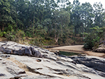 ghagraenglish : "Ghagra:-From Belpahari, the path to red laterite road reaches dreamy Ghaghara. Nine-kilometer-long path, can be reached by jeep or on foot. The shortest road takes forty minutes’ walk. The walking road goes through the thick forest of Shal, Pial and eucalyptus. All sides surrounded by mountains. Everywhere there is an exhibition of green Shal. And sometimes the spring water is flowing like a snake's hood through the innumerable holes of the vast black stone hills. Here and there the mounds have raised their head. The stones here are shaped like jugs or jars due to the impact of water. In the local language he is called 'Gagra'. From there the name Ghagra was originated. For a long time, Ghagra have been a sacred place for the people of the local tribes and underdeveloped communities. Tarafeni River flows through the middle of the Ghagra. Tarafeni Barrage is at a short distance. The water of Kangsavati River has been trapped under ten lock gates. "+