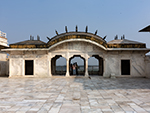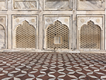 itimaduddaulaenglish : "Tomb of Itimad-ud-Daula:-The tomb of Itimad-ud-Daula is situated on the left bank of river Yamuna next to Chini-ka-Rouza. This monument is also referred to as Baby Taj. Itimad-ud-daulah is a title given to Nur Jahan's father, Mir Ghiyas Beg. According to legend, Mir Ghiyas Beg was a Persian nobleman. He, along with his wife Asmat Begum, visited Emperor Akbar's court on their way to India. After meeting with Akbar, Mir Ghiyas Beg joined the court. As he was a minister and a trusted treasurer of Akbar's court, he later promoted to the rank of vizier under Jahangir. Jahangir bestowed upon him the title of Itimad-ud-Daula. Jahangir also married his daughter Nurjahan. In 1622, Nur Jahan undertook the construction of the tomb in his father's memory. It took six years to build the tomb of Itimad-ud-Daula. When it was built in 1628, it is known to be the first Mughal structure in India built entirely of white marble. As the mausoleum reflects the elegant personality of Mir Ghiyas Beg, it also shows the artistic abilities of the impossibly intelligent Nur Jahan, who ruled the Mughal Empire quietly from behind the scenes during her time.The tomb is situated in the centre of a quadrangle surrounded by a Charbagh style garden. The structure is 149 feet square and stands on a raised sandstone terrace measuring four feet from the ground. The mausoleum consists of a central hall, containing the tombs of Itimad-ud-daulah and his wife. Surrounding this hall is a small room containing the tombs of Nurjahan and other family members. A sandstone staircase leads to the first floor, where the delightful rectangular dome rises above the pavilion of the central hall and is topped by spire. This pavilion has plain marble monuments without any inscriptions. At the top corner of the building there are four round towers made of marble about forty feet high. The ground floor monuments and walls are engraved with inscriptions in Persian. The inscriptions on the walls are taken from the Quran and other holy books, while the inscriptions on the monuments mention the names and titles of the intercessors. "+